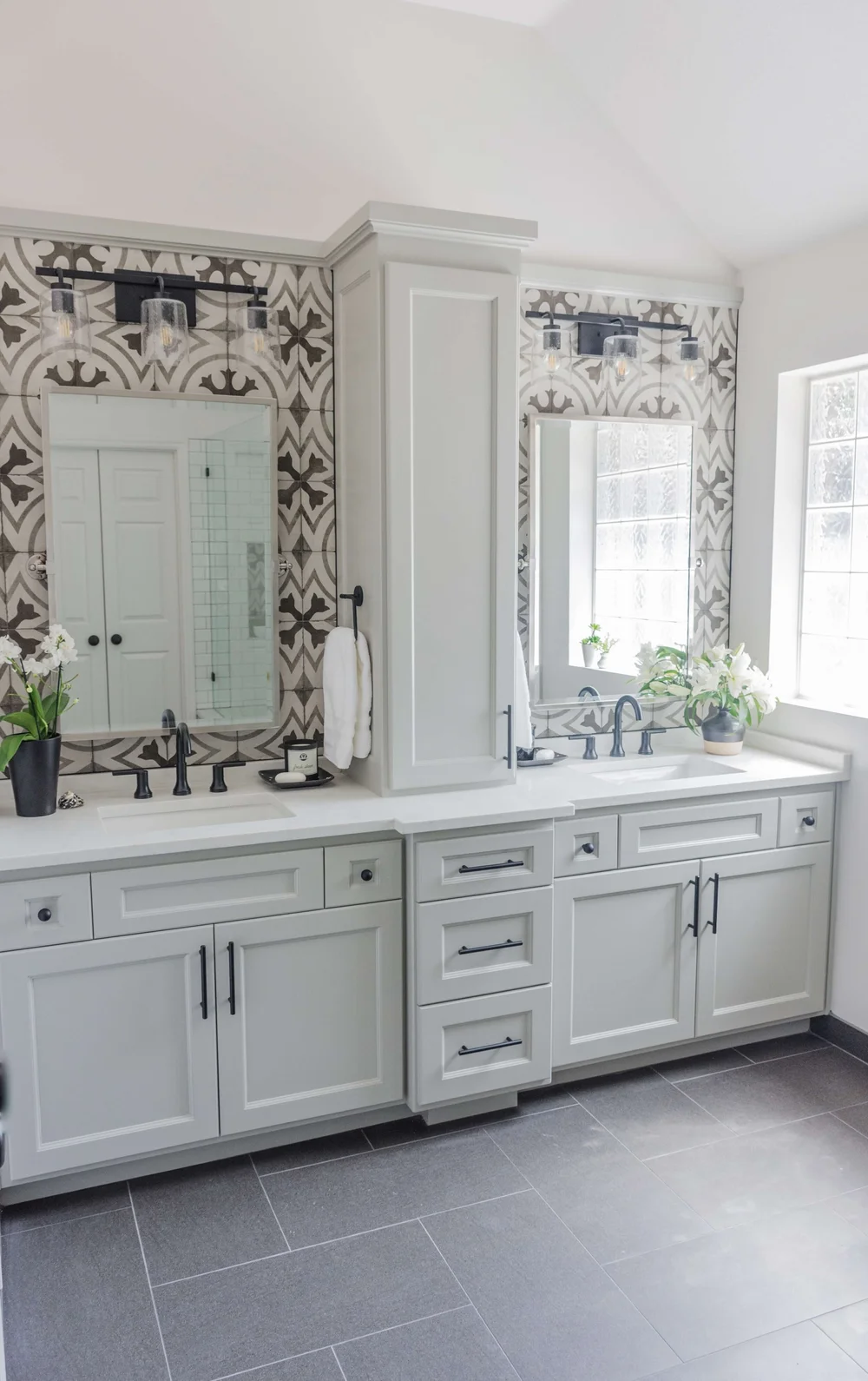 Master Bathroom Double Vanity With Center Tower - Double Vanity Towers Houzz : A bathroom design that captivates with simple beauty and subtle elegance.